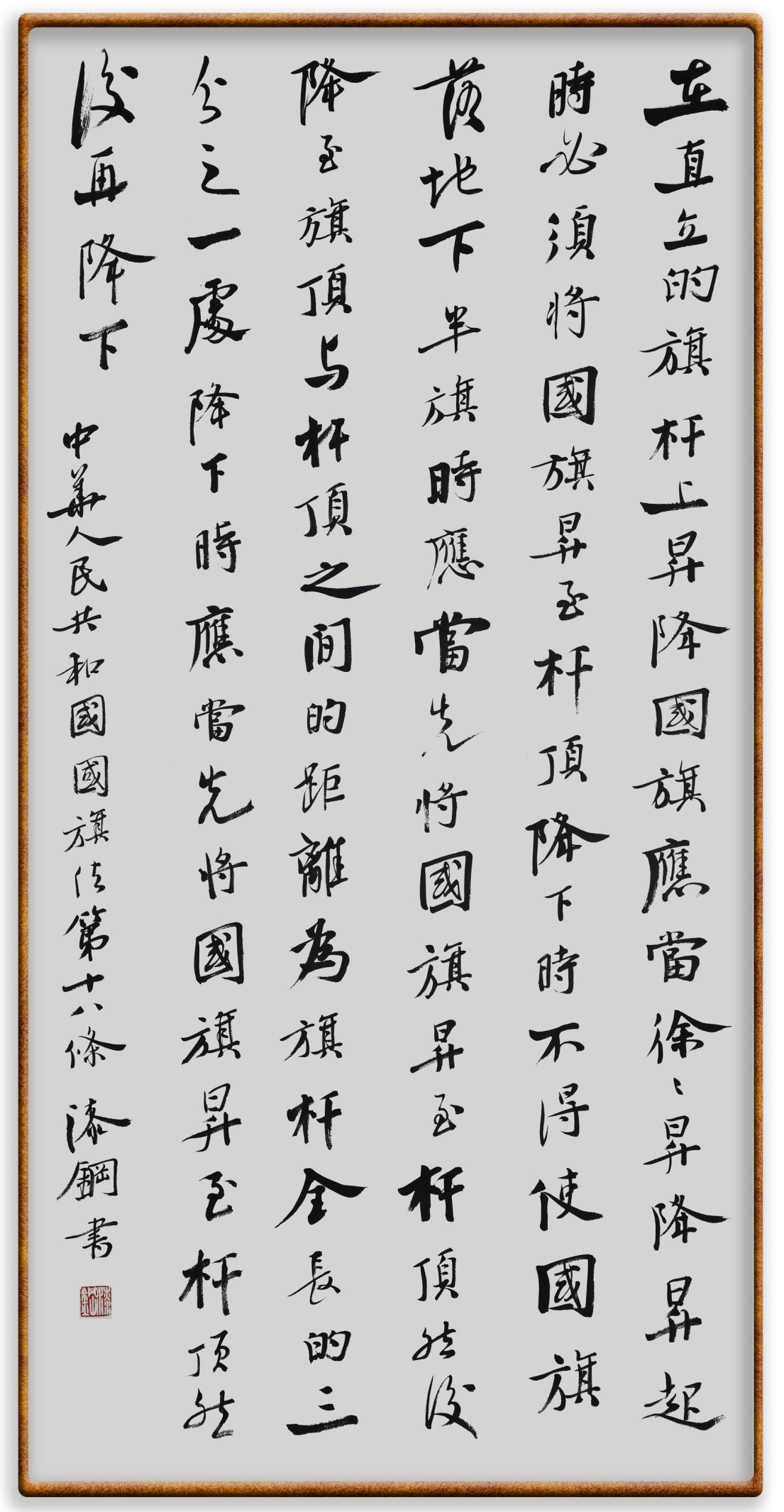 國旗法第十八條 在直立的旗桿上升降國旗,應當徐徐升降。升起時,必須將國旗升至桿頂;降下時,不得使國旗落地。
