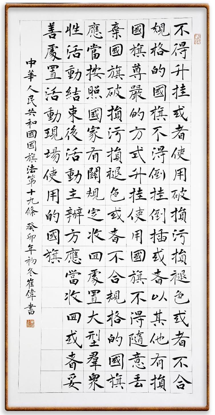國旗法第十九條 不得升掛或者使用破損、污損、褪色或者不合規(guī)格的國旗,不得倒掛、倒插或者以其他有損國旗尊嚴的方式升掛、使用國旗。