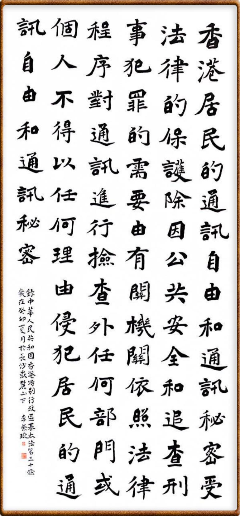 香港基本法第三十條 香港居民的通訊自由和通訊秘密受法律的保護(hù)。除因公共安全和追查刑事犯罪的需要,由有關(guān)機關(guān)依照法律程序?qū)νㄓ嵾M(jìn)行檢查外,任何部門或個人不得以任何理由侵犯居民的通訊自由和通訊秘密。
