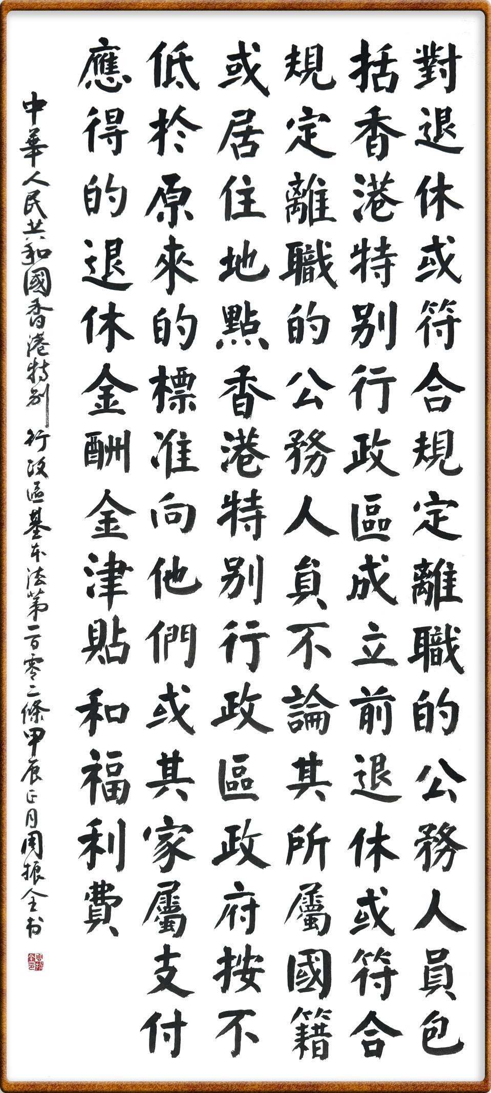 香港基本法第一百零二條 對(duì)退休或符合規(guī)定離職的公務(wù)人員,包括香港特別行政區(qū)成立前退休或符合規(guī)定離職的公務(wù)人員,不論其所屬國(guó)籍或居住地點(diǎn),香港特別行政區(qū)政府按不低于原來的標(biāo)準(zhǔn)向他們或其家屬支付應(yīng)得的退休金、酬金、津貼和福利費(fèi)。