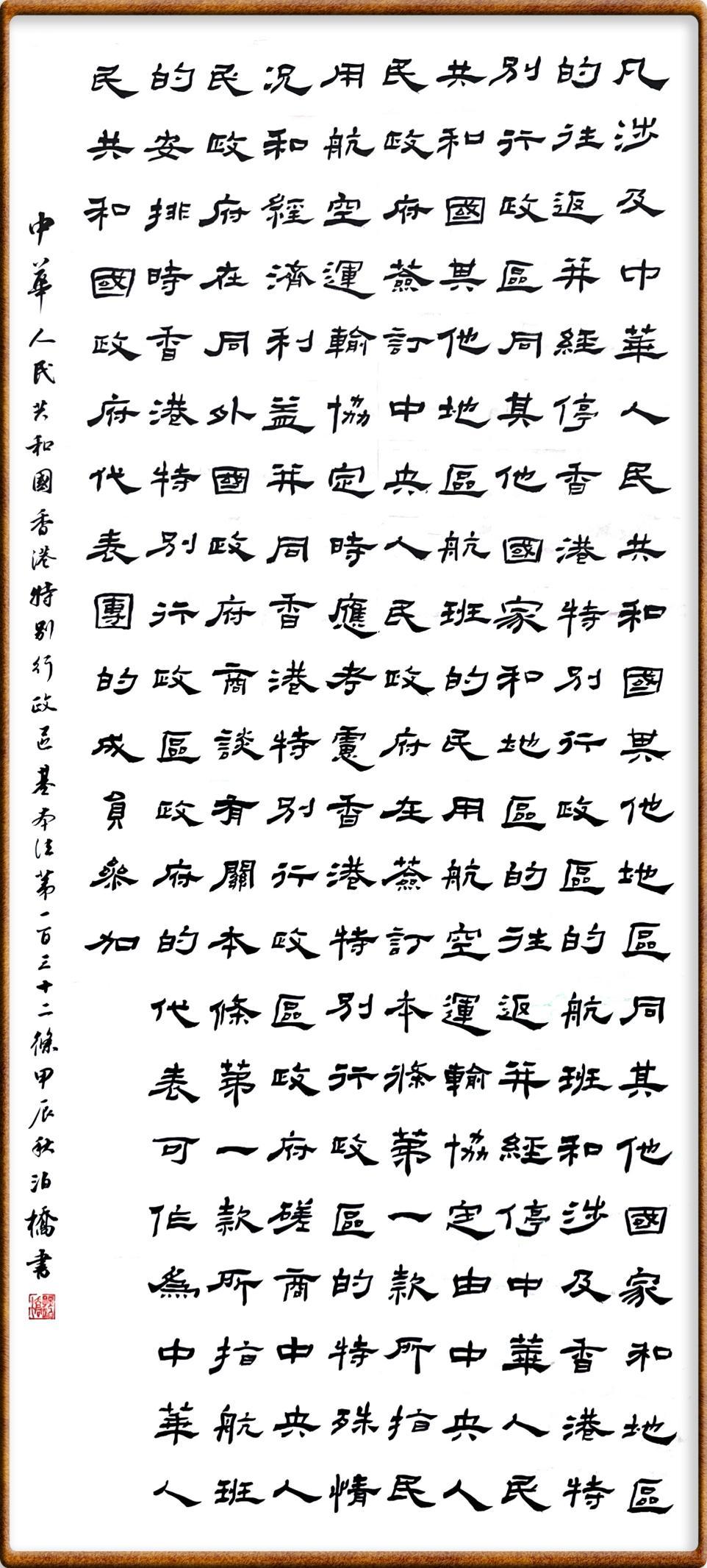 香港基本法第一百三十二條 凡涉及中華人民共和國其他地區(qū)同其他國家和地區(qū)的往返并經(jīng)停香港特別行政區(qū)的航班,和涉及香港特別行政區(qū)同其他國家和地區(qū)的往返并經(jīng)停中華人民共和國其他地區(qū)航班的民用航空運(yùn)輸協(xié)定,由中央人民政府簽訂。