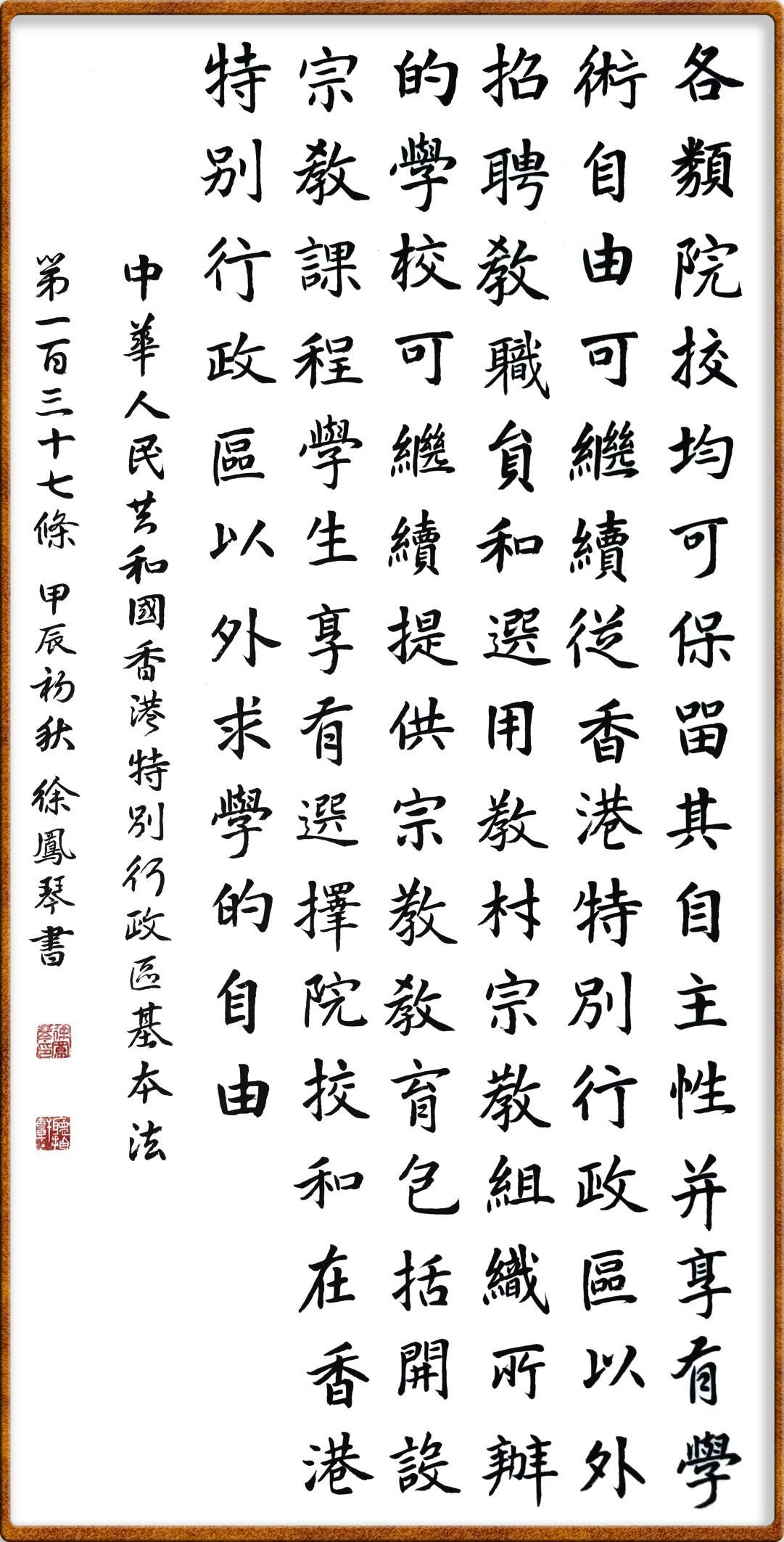 香港基本法第一百三十七條 各類院校均可保留其自主性并享有學(xué)術(shù)自由,可繼續(xù)從香港特別行政區(qū)以外招聘教職員和選用教材。宗教組織所辦的學(xué)??衫^續(xù)提供宗教教育,包括開設(shè)宗教課程。