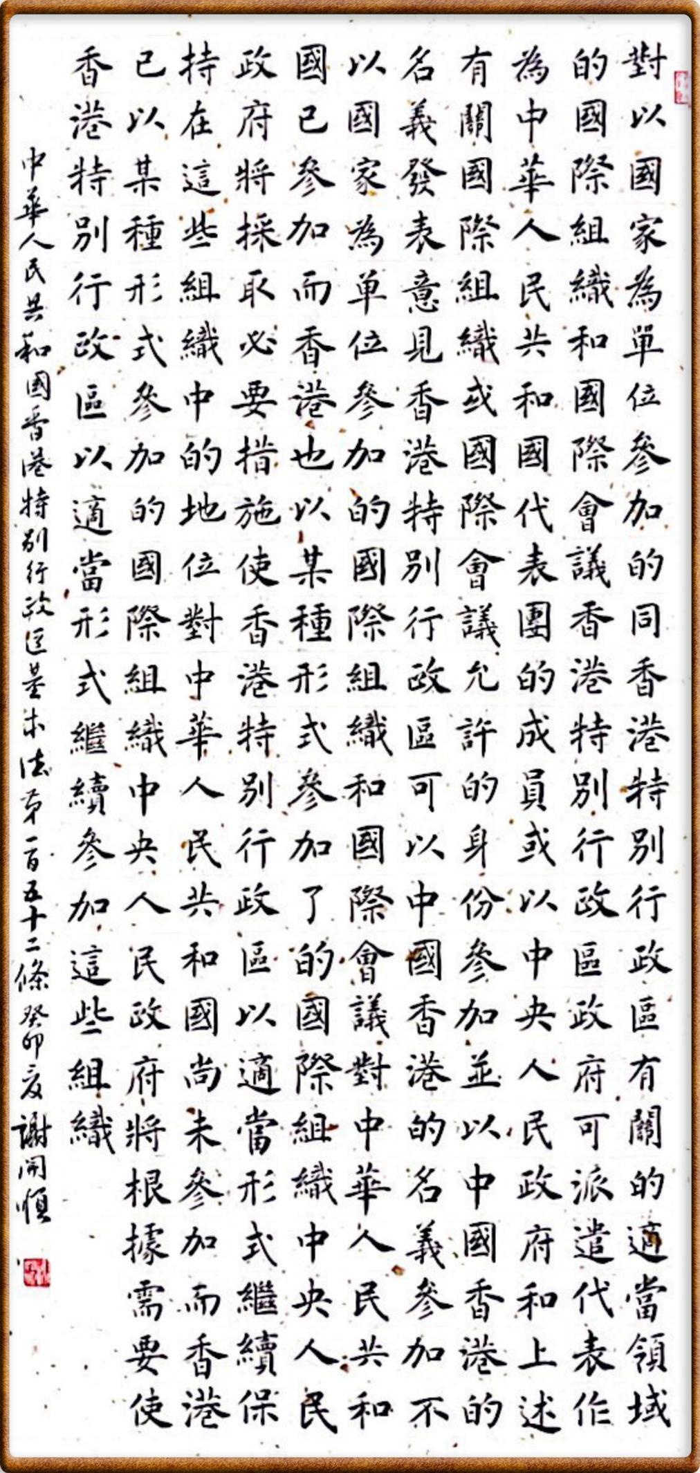 香港基本法第一百五十二條 對(duì)以國家為單位參加的、同香港特別行政區(qū)有關(guān)的、適當(dāng)領(lǐng)域的國際組織和國際會(huì)議,香港特別行政區(qū)政府可派遣代表作為中華人民共和國代表團(tuán)的成員或以中央人民政府和上述有關(guān)國際組織或國際會(huì)議允許的身份參加,并以“中國香港”的名義發(fā)表意見。