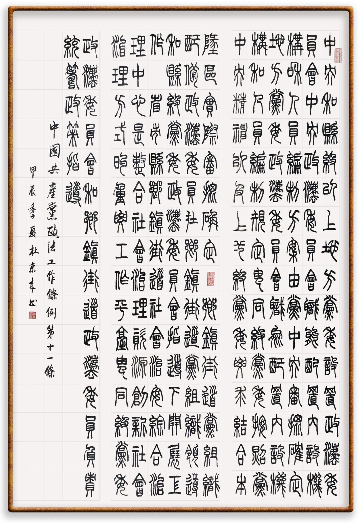 《中國共產(chǎn)黨政法工作條例》對(duì)黨領(lǐng)導(dǎo)新時(shí)代政法工作進(jìn)行全面制度擘畫,為黨領(lǐng)導(dǎo)政法工作提供基本遵循,具有重大而深遠(yuǎn)的意義。為學(xué)習(xí)好、宣傳好、貫徹好、實(shí)施好這部黨內(nèi)法規(guī),繼《中華人民共和國民法典》《中華人民共和國憲法》《信訪工作條例》《中華人民共和國澳門特別行政區(qū)基本法》《中華人民共和國香港特別行政區(qū)基本法》等法律法規(guī)之后,“書·法”系列活動(dòng)將筆端對(duì)準(zhǔn)《中國共產(chǎn)黨政法工作條例》。