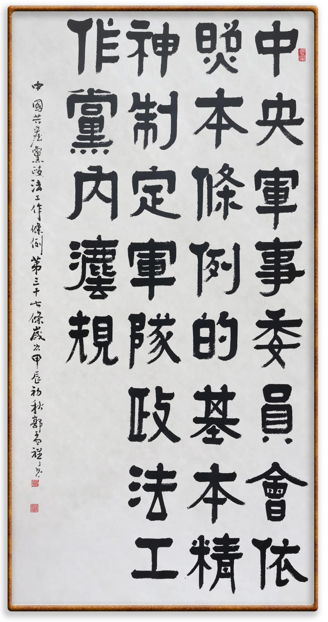 《中國共產(chǎn)黨政法工作條例》對黨領(lǐng)導(dǎo)新時代政法工作進行全面制度擘畫,為黨領(lǐng)導(dǎo)政法工作提供基本遵循,具有重大而深遠的意義。為學(xué)習(xí)好、宣傳好、貫徹好、實施好這部黨內(nèi)法規(guī),繼《中華人民共和國民法典》《中華人民共和國憲法》《信訪工作條例》《中華人民共和國澳門特別行政區(qū)基本法》《中華人民共和國香港特別行政區(qū)基本法》等法律法規(guī)之后,“書·法”系列活動將筆端對準《中國共產(chǎn)黨政法工作條例》。