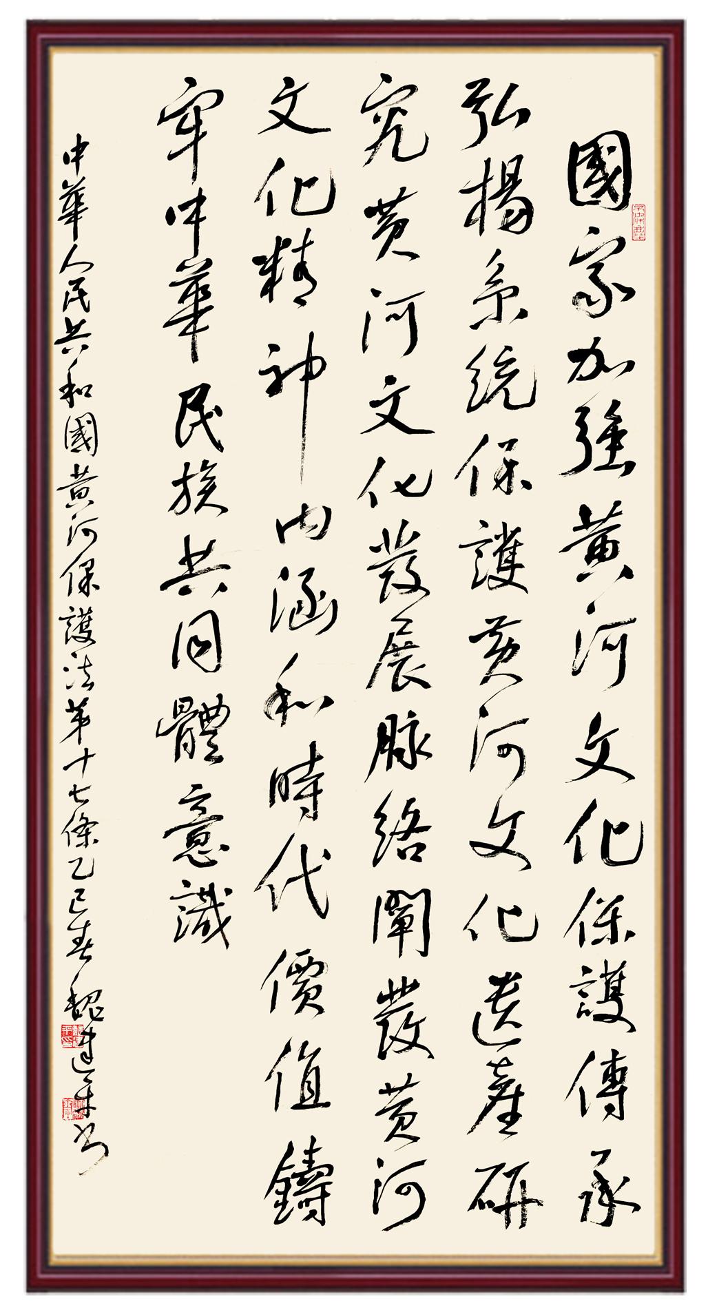 黃河寧,天下平。黃河是中華民族的發(fā)源地和搖籃,保護黃河是事關(guān)中華民族偉大復(fù)興的千秋大計。《中華人民共和國黃河保護法》為推進水資源節(jié)約集約利用、保護傳承弘揚黃河文化、推動黃河流域生態(tài)保護和高質(zhì)量發(fā)展提供了有力法治保障。繼書寫《中華人民共和國民法典》《中華人民共和國憲法》《中華人民共和國澳門特別行政區(qū)基本法》《中華人民共和國香港特別行政區(qū)基本法》《中華人民共和國國旗法》《中華人民共和國國徽法》《中華人民共和國國歌法》《中華人民共和國法官法》等法律法規(guī)之后,法制日報社聯(lián)合沿黃九?。▍^(qū))司法廳、書法家協(xié)會,將筆端對準《中華人民共和國黃河保護法》。