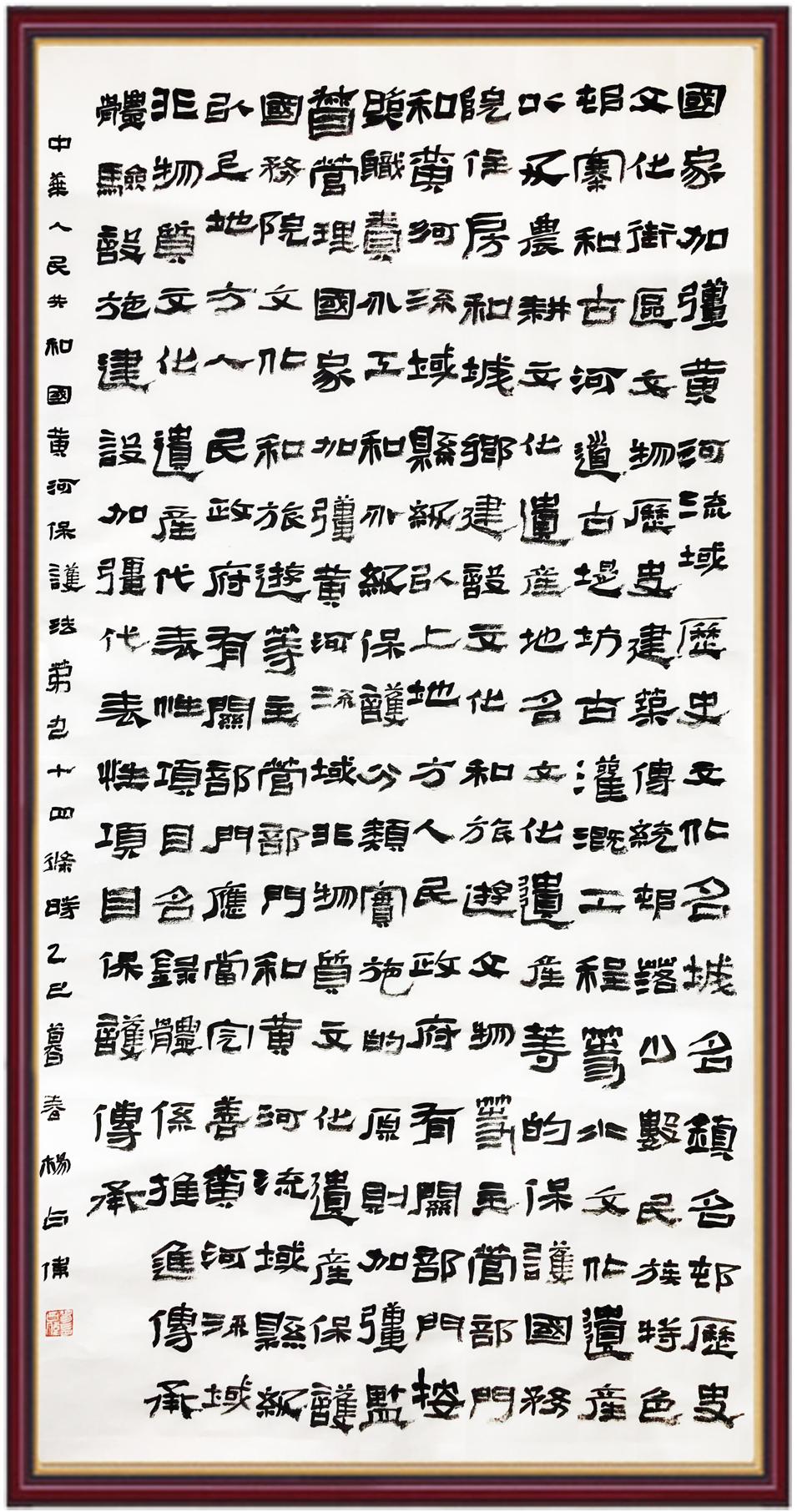 黃河寧,天下平。黃河是中華民族的發(fā)源地和搖籃,保護(hù)黃河是事關(guān)中華民族偉大復(fù)興的千秋大計?!吨腥A人民共和國黃河保護(hù)法》為推進(jìn)水資源節(jié)約集約利用、保護(hù)傳承弘揚黃河文化、推動黃河流域生態(tài)保護(hù)和高質(zhì)量發(fā)展提供了有力法治保障。繼書寫《中華人民共和國民法典》《中華人民共和國憲法》《中華人民共和國澳門特別行政區(qū)基本法》《中華人民共和國香港特別行政區(qū)基本法》《中華人民共和國國旗法》《中華人民共和國國徽法》《中華人民共和國國歌法》《中華人民共和國法官法》等法律法規(guī)之后,法制日報社聯(lián)合沿黃九省(區(qū))司法廳、書法家協(xié)會,將筆端對準(zhǔn)《中華人民共和國黃河保護(hù)法》。