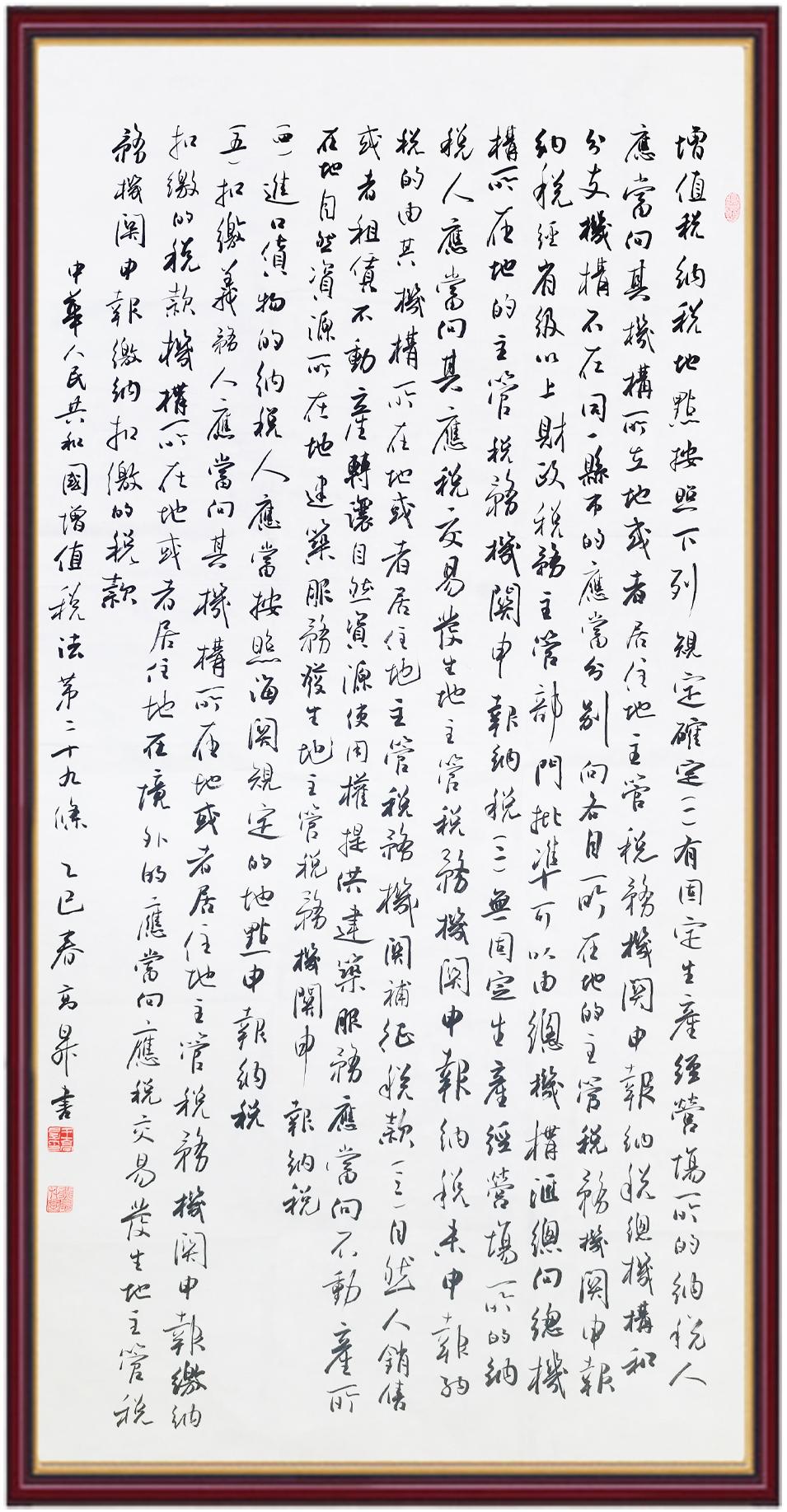 稅收一頭連著國(guó)計(jì),一頭連著民生。全面推進(jìn)依法治稅,是全面依法治國(guó)基本方略在稅收領(lǐng)域的集中體現(xiàn)?!吨腥A人民共和國(guó)增值稅法》將于2026年1月1日起施行,對(duì)全面落實(shí)稅收法定原則、健全有利于高質(zhì)量發(fā)展的增值稅制度、規(guī)范增值稅的征收和繳納、保護(hù)納稅人合法權(quán)益具有重要意義。繼書寫《中華人民共和國(guó)民法典》《中華人民共和國(guó)憲法》《中華人民共和國(guó)國(guó)旗法》《中華人民共和國(guó)國(guó)徽法》《中華人民共和國(guó)國(guó)歌法》《中華人民共和國(guó)法官法》《中華人民共和國(guó)黃河保護(hù)法》等法律法規(guī)之后,法制日?qǐng)?bào)社將筆端對(duì)準(zhǔn)《中華人民共和國(guó)增值稅法》。