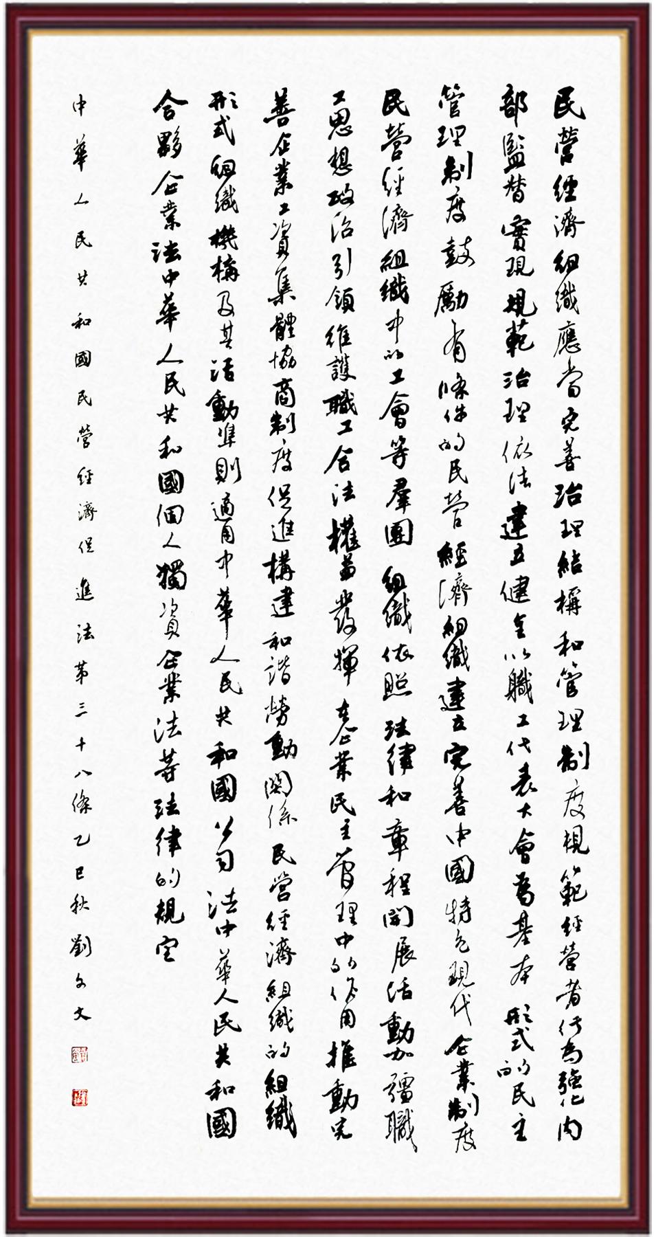 《中華人民共和國民營經(jīng)濟(jì)促進(jìn)法》自今年5月20日起施行。作為我國首部專門關(guān)于民營經(jīng)濟(jì)發(fā)展的基礎(chǔ)性法律,民營經(jīng)濟(jì)促進(jìn)法將支持和保障民營經(jīng)濟(jì)發(fā)展的法律制度融入中國特色社會(huì)主義法律體系,具有重大的法治意義,為促進(jìn)民營經(jīng)濟(jì)持續(xù)、健康、高質(zhì)量發(fā)展提供了堅(jiān)實(shí)的法治保障。為更好地學(xué)習(xí)、宣傳、貫徹這部法律,法治日?qǐng)?bào)社聯(lián)合司法部普法與依法治理局,開展“‘書·法’系列活動(dòng)之書寫《中華人民共和國民營經(jīng)濟(jì)促進(jìn)法》”活動(dòng)。