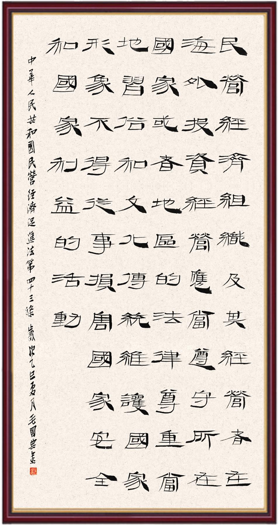 《中華人民共和國民營經(jīng)濟(jì)促進(jìn)法》自今年5月20日起施行。作為我國首部專門關(guān)于民營經(jīng)濟(jì)發(fā)展的基礎(chǔ)性法律,民營經(jīng)濟(jì)促進(jìn)法將支持和保障民營經(jīng)濟(jì)發(fā)展的法律制度融入中國特色社會主義法律體系,具有重大的法治意義,為促進(jìn)民營經(jīng)濟(jì)持續(xù)、健康、高質(zhì)量發(fā)展提供了堅實的法治保障。為更好地學(xué)習(xí)、宣傳、貫徹這部法律,法治日報社聯(lián)合司法部普法與依法治理局,開展“‘書·法’系列活動之書寫《中華人民共和國民營經(jīng)濟(jì)促進(jìn)法》”活動。