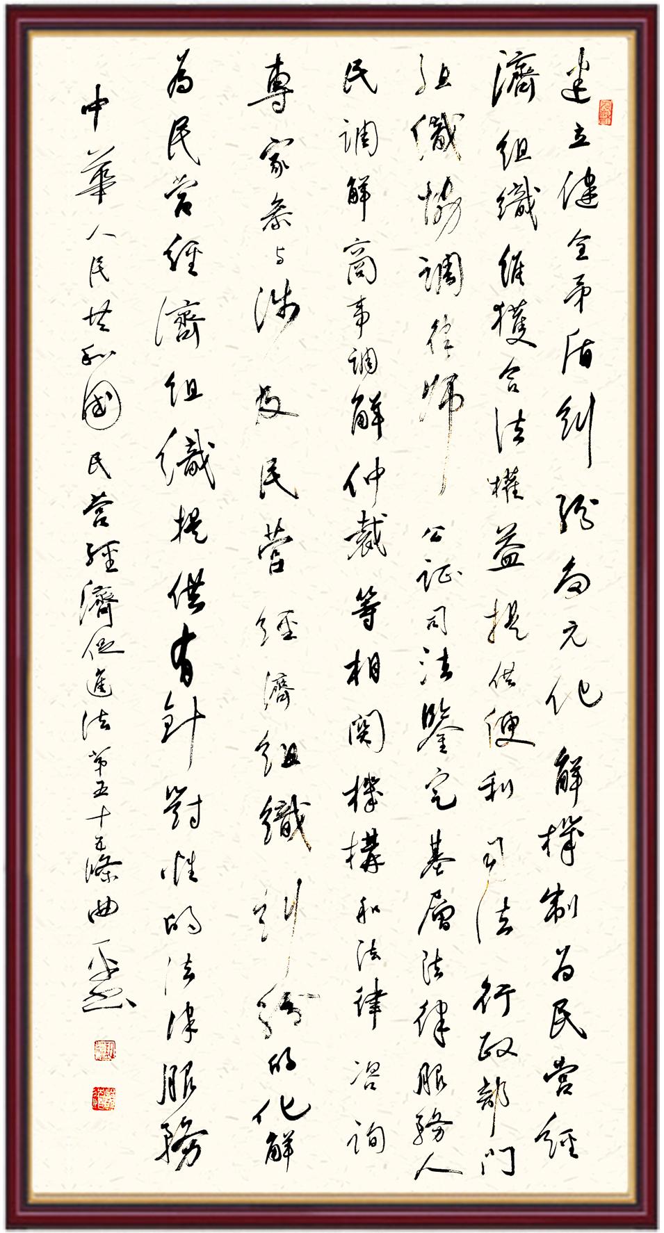《中華人民共和國(guó)民營(yíng)經(jīng)濟(jì)促進(jìn)法》自今年5月20日起施行。作為我國(guó)首部專門關(guān)于民營(yíng)經(jīng)濟(jì)發(fā)展的基礎(chǔ)性法律,民營(yíng)經(jīng)濟(jì)促進(jìn)法將支持和保障民營(yíng)經(jīng)濟(jì)發(fā)展的法律制度融入中國(guó)特色社會(huì)主義法律體系,具有重大的法治意義,為促進(jìn)民營(yíng)經(jīng)濟(jì)持續(xù)、健康、高質(zhì)量發(fā)展提供了堅(jiān)實(shí)的法治保障。為更好地學(xué)習(xí)、宣傳、貫徹這部法律,法治日?qǐng)?bào)社聯(lián)合司法部普法與依法治理局,開展“‘書·法’系列活動(dòng)之書寫《中華人民共和國(guó)民營(yíng)經(jīng)濟(jì)促進(jìn)法》”活動(dòng)。