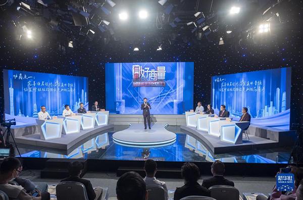 政協(xié)委員、政府部門代表、物業(yè)代表等在廣州市政協(xié)“有事好商量”民生實(shí)事協(xié)商平臺(tái),圍繞加強(qiáng)裝修垃圾管理議題展開協(xié)商(2021年11月19日攝)。新華社發(fā)(莊小龍 攝)