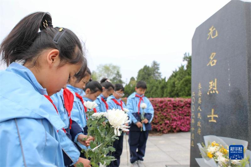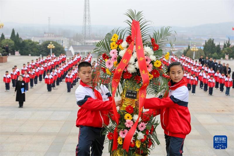 3月30日,學(xué)生在皖東烈士陵園為革命先烈獻花。