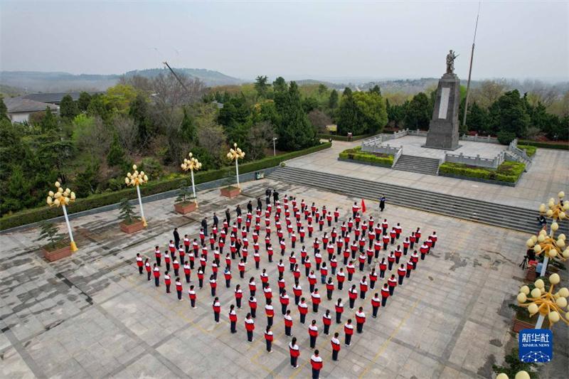 3月30日,學(xué)生在皖東烈士陵園祭奠先烈(無人機照片)。