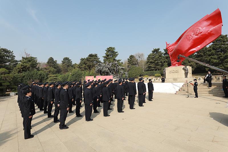 日前,按照北京市公安局“致敬·緬懷·奮進(jìn)”——首都公安英烈紀(jì)念活動(dòng)整體安排,來自局屬各單位的功模代表、2022“北京榜樣·最美警察”當(dāng)選者、北京警察學(xué)院學(xué)生黨員代表、石景山分局黨員民警代表共計(jì)100余人,在八寶山革命公墓舉辦緬懷首都公安英烈活動(dòng)。在革命公墓墓區(qū)、烈士骨灰堂、英烈墻,全體人員向在這里安放骨灰的北京公安烈士敬獻(xiàn)鮮花、行鞠躬禮并聆聽烈士生平。他們擦拭墓碑,重溫公安英烈的光輝事跡,向?yàn)榫S護(hù)首都社會(huì)安定、人民幸福安寧獻(xiàn)出寶貴生命的公安英烈致以崇高敬意,表達(dá)深切哀思。