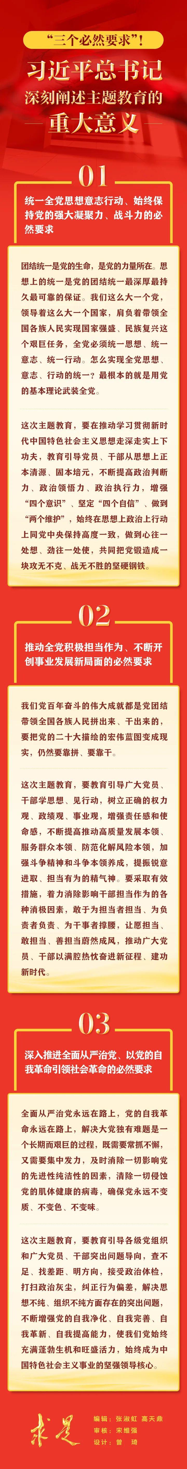 5月1日出版的第9期《求是》雜志刊發(fā)習(xí)近平總書(shū)記重要文章《在學(xué)習(xí)貫徹習(xí)近平新時(shí)代中國(guó)特色社會(huì)主義思想主題教育工作會(huì)議上的講話》。在這篇重要文章中,習(xí)近平總書(shū)記用“三個(gè)必然要求”深刻闡述開(kāi)展這次主題教育的重大意義。