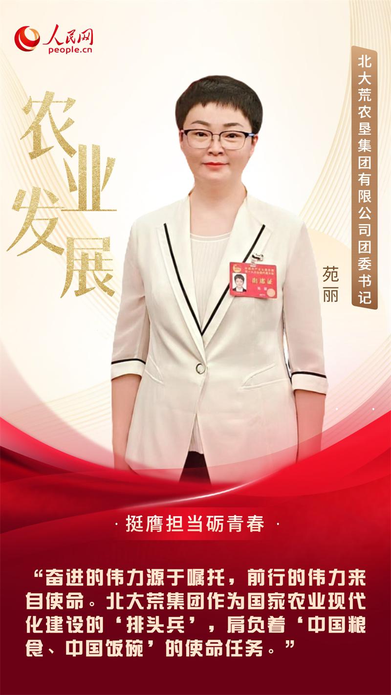 苑麗,1985年出生,中共黨員,共青團(tuán)十九大代表,現(xiàn)任北大荒農(nóng)墾集團(tuán)有限公司黨建工作部部長、機(jī)關(guān)黨委常務(wù)副書記、團(tuán)委書記。