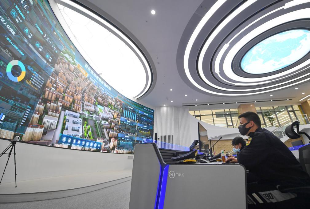 雄安新區(qū)容東城市運(yùn)營管理中心監(jiān)管平臺。新華社記者朱旭東 攝