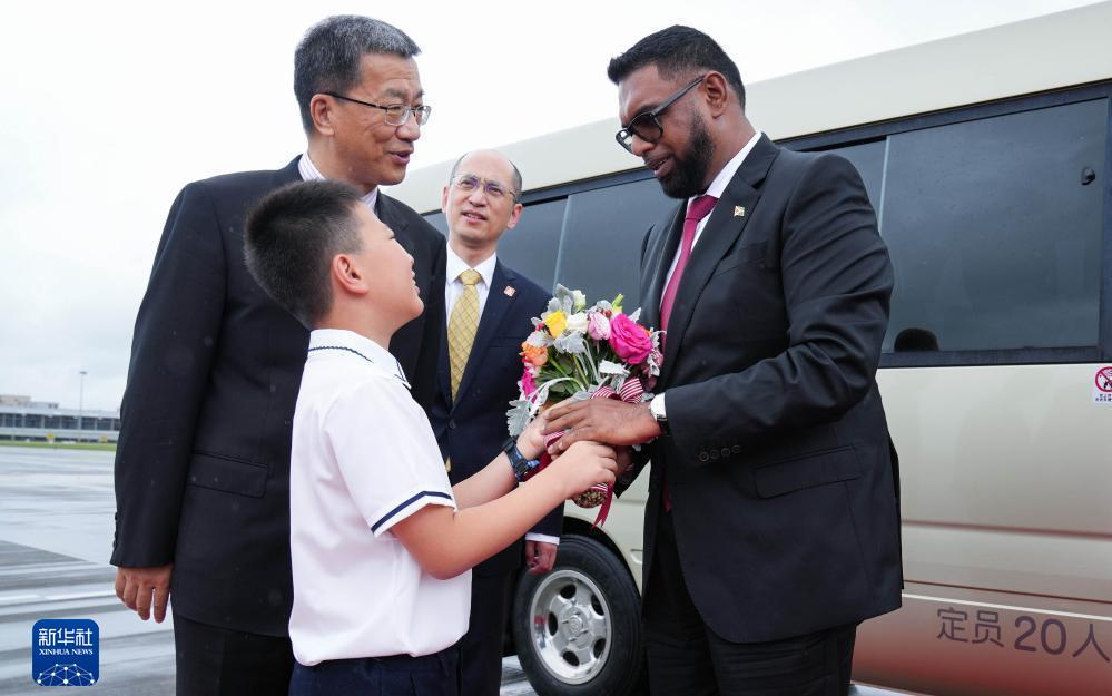 成都大運(yùn)會(huì)丨來華出席成都大運(yùn)會(huì)開幕式并訪問的圭亞那總統(tǒng)阿里抵達(dá)四川省成都市