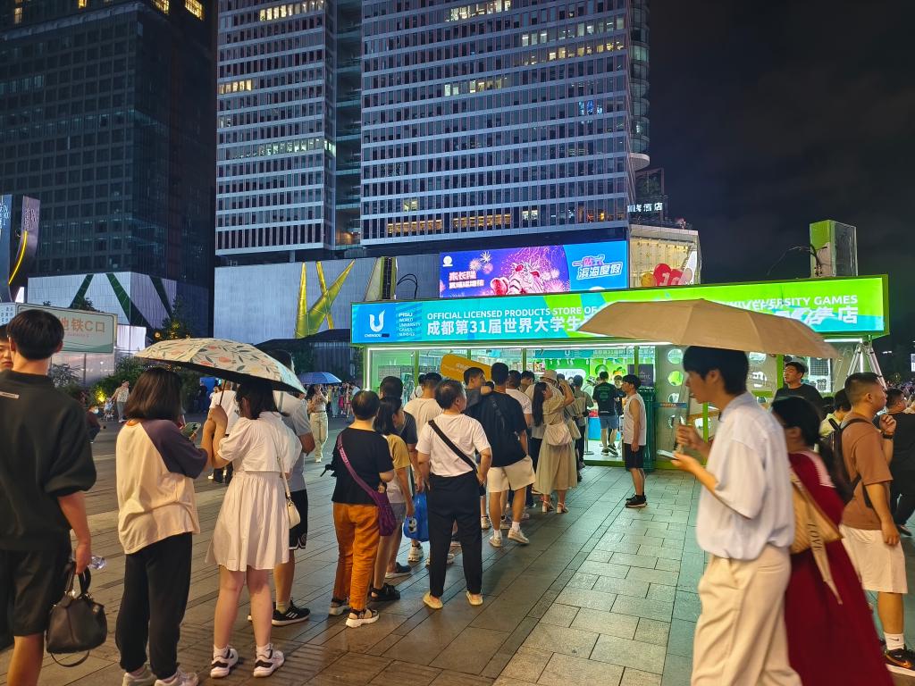 很多家成都大運(yùn)會(huì)官方特許商品零售店門(mén)口