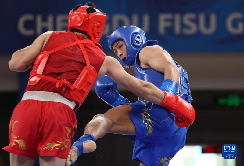 當(dāng)日,在成都第31屆世界大學(xué)生夏季運(yùn)動(dòng)會(huì)武術(shù)散打男子80公斤級(jí)決賽中,中國選手柳文龍以2比0戰(zhàn)勝伊朗選手阿里,獲得冠軍。