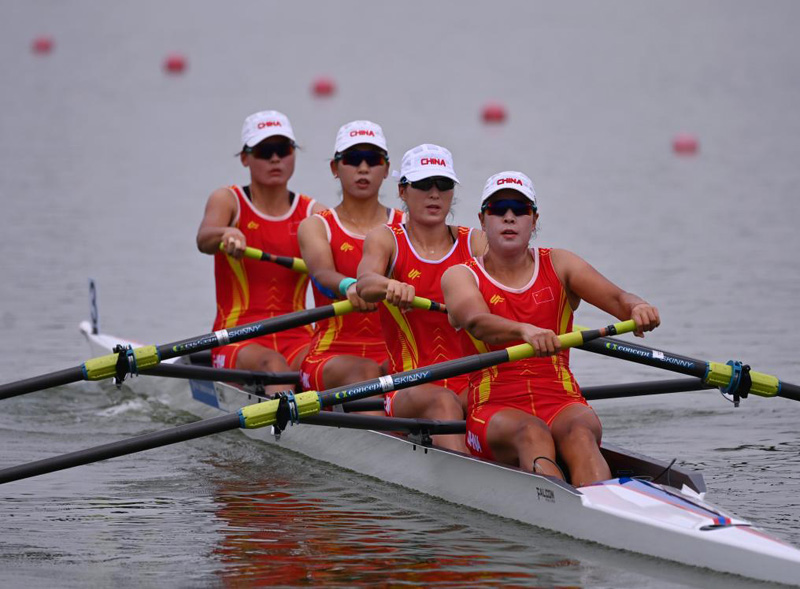 男子四人單槳和女子四人單槳是中國隊強項。由宋春曉、宗照山、劉江宇和肖揚組成的中國隊在男子四人單槳決賽中,以四個計時點排名第一、最終用時6分09秒46奪金。女子四人單槳決賽中,張書賢、劉曉鑫、王子鳳和徐星葉各自體能、技術(shù)實力過硬,每一槳的動作都極其整齊、宛如一人,她們最終以6分41秒05的成績,為中國隊再添一金。