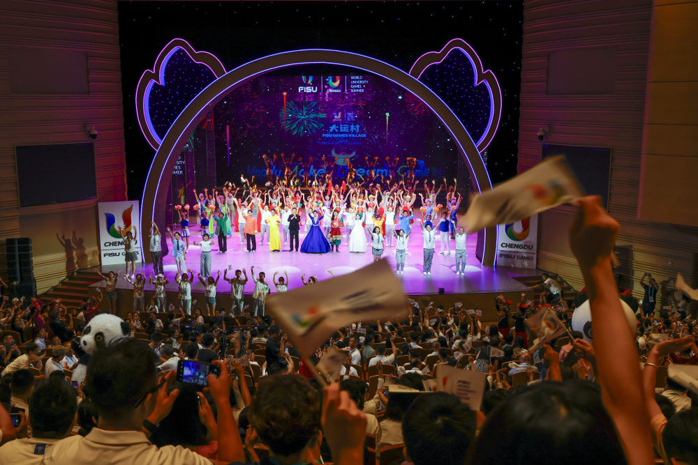 成都大運村以“建改結合”方式全面融入成都大學,該校校園在大運會期間成為來自世界各地學生運動員的家。作為此次系列主題晚會的最后一場,《成就夢想》也是唯一一個全部由成都大學師生演出的主題晚會。