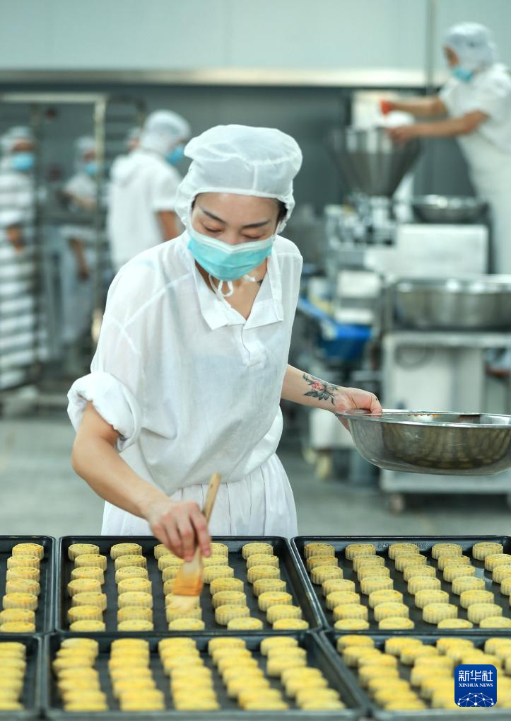 中秋節(jié)臨近,各地月餅加工企業(yè)忙著生產(chǎn)月餅,供應節(jié)日市場。