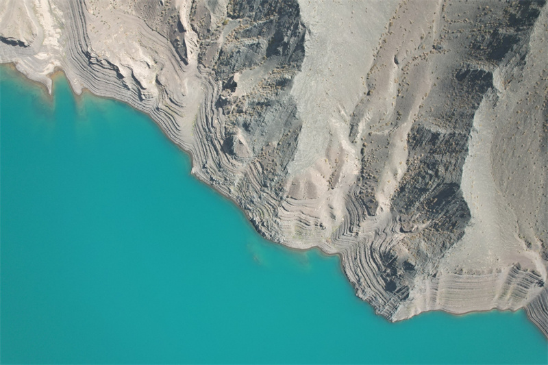 新疆吐魯番市高昌區(qū)大河沿水庫(無人機照片)。(新疆日報記者鄒懿 攝)