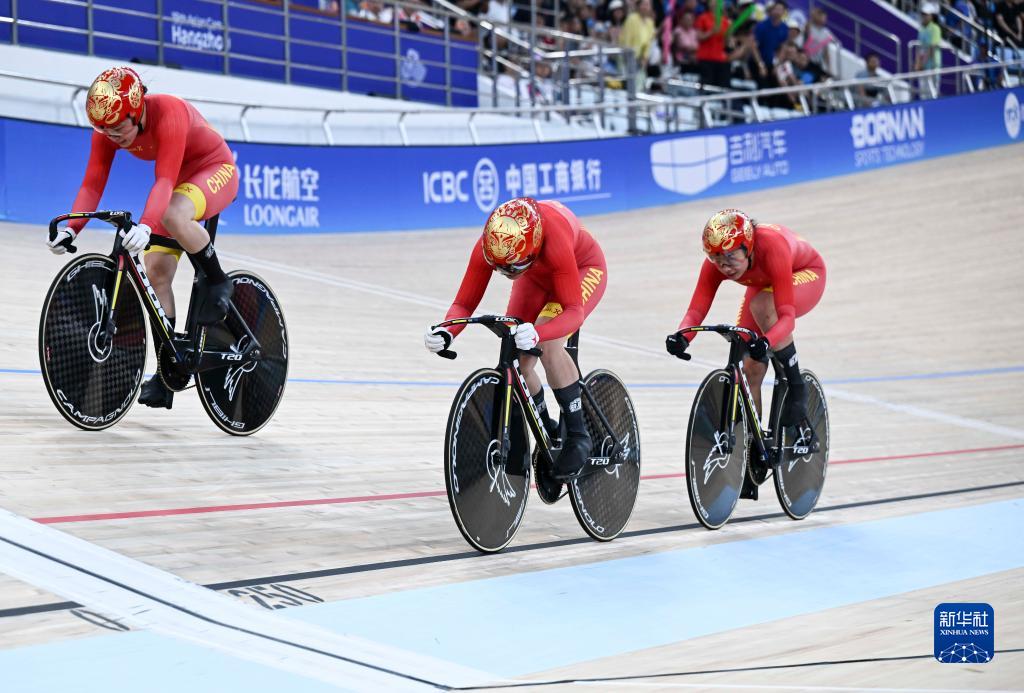 當(dāng)日,杭州亞運(yùn)會(huì)場(chǎng)地自行車(chē)女子團(tuán)體競(jìng)速賽在浙江杭州淳安界首體育中心自行車(chē)館舉行,中國(guó)隊(duì)以46秒376的成績(jī)獲得冠軍并打破該項(xiàng)目亞洲紀(jì)錄,韓國(guó)隊(duì)和馬來(lái)西亞隊(duì)分獲二、三名。