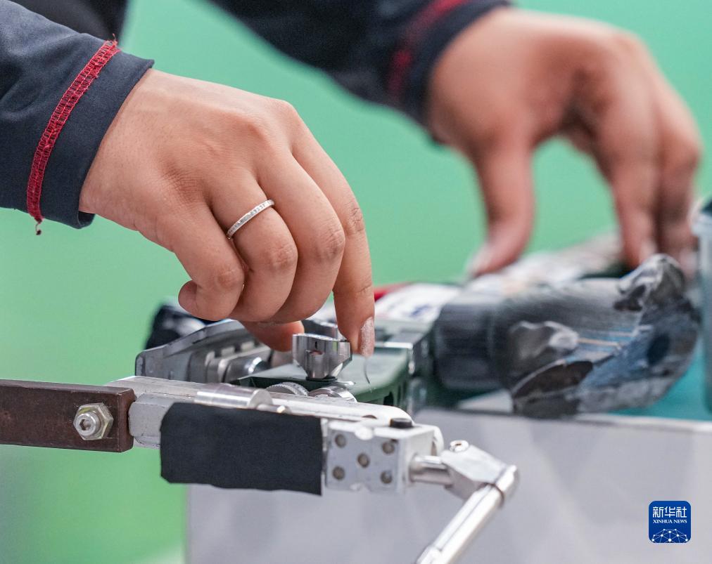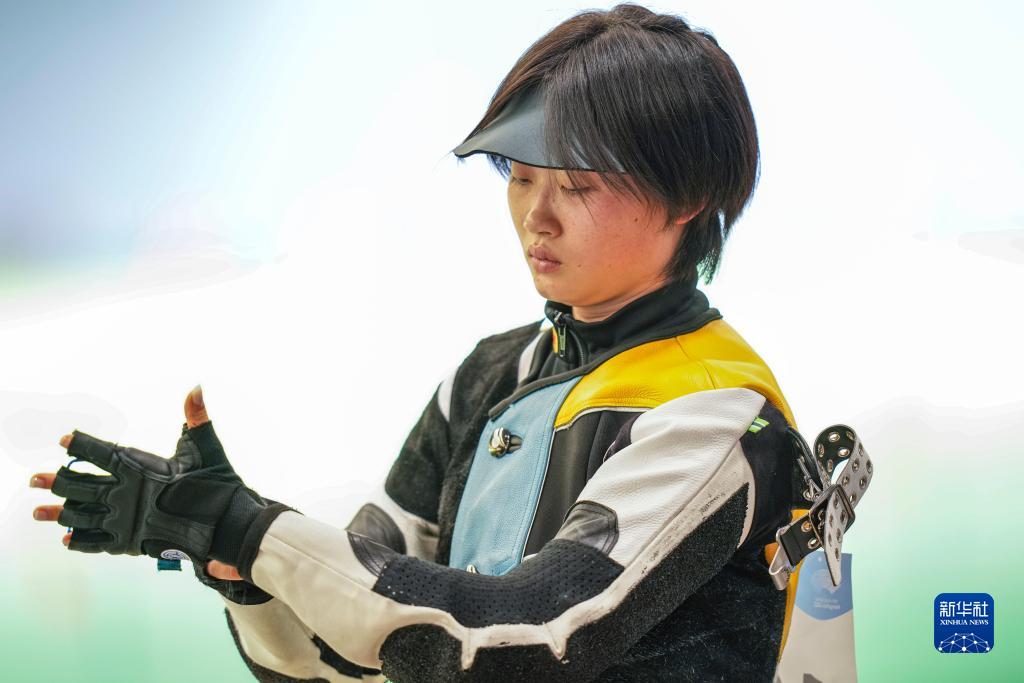 9月27日,印度隊選手希芙特·考爾·薩姆拉在比賽中調(diào)整槍械。