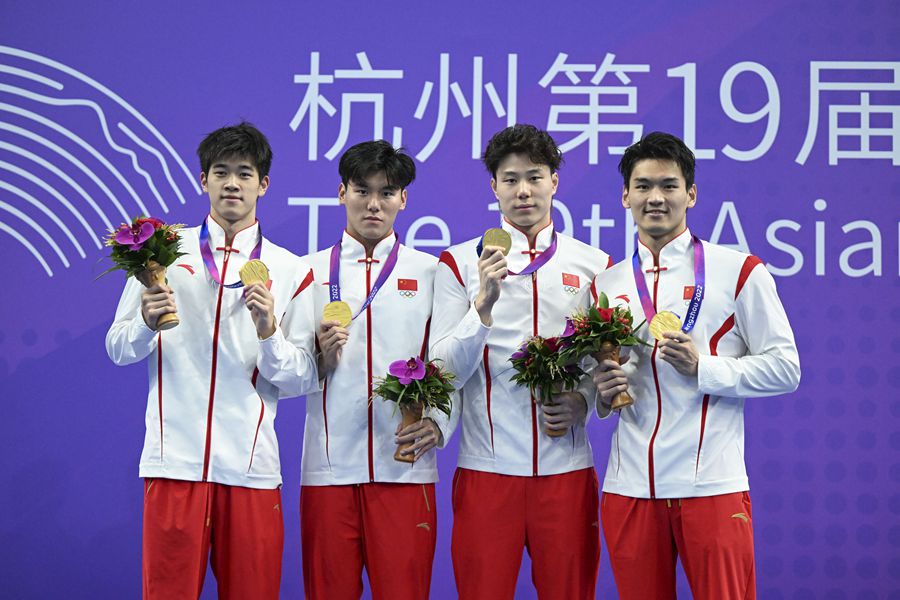 9月26日,在杭州亞運(yùn)會(huì)男子4×100米混合泳接力決賽中,中國(guó)隊(duì)奪得金牌,同時(shí)以3分27秒01的成績(jī)刷新亞洲紀(jì)錄。
