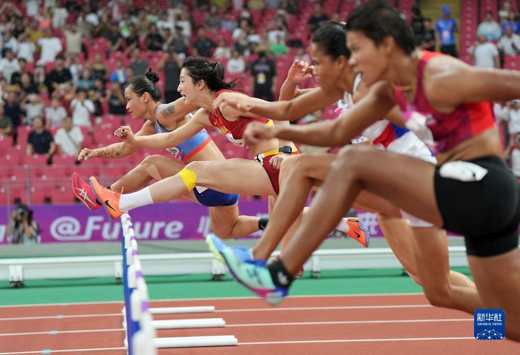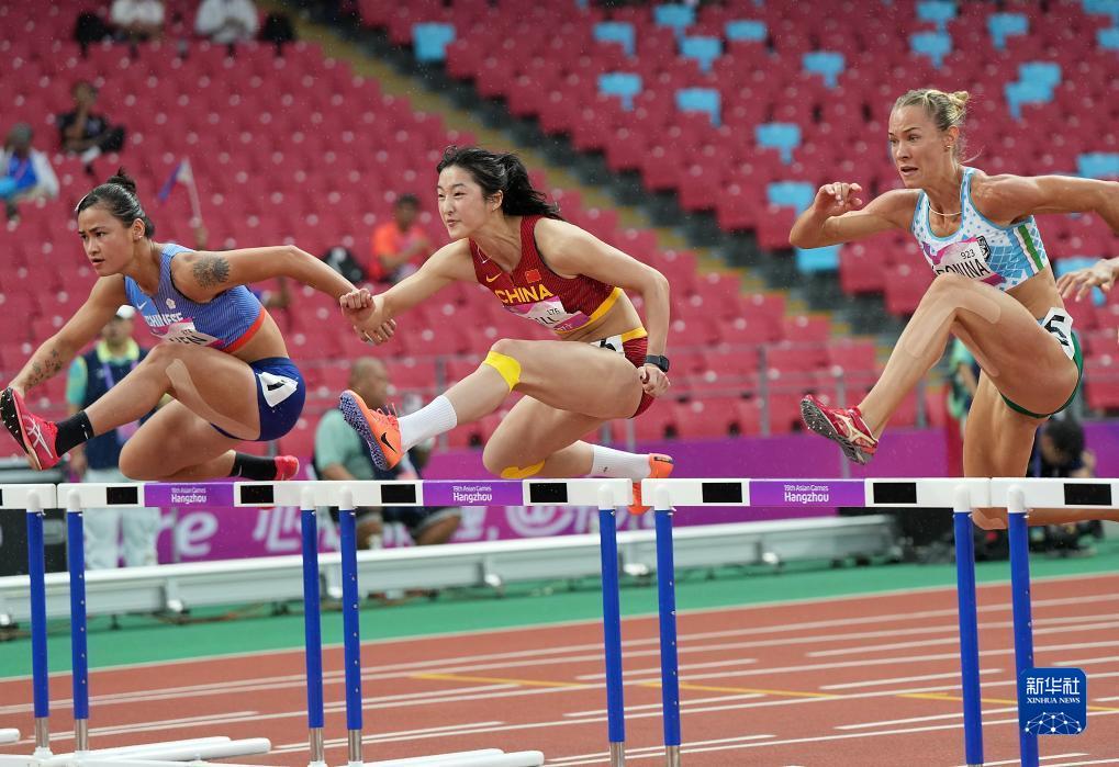 當(dāng)日,杭州亞運(yùn)會(huì)田徑項(xiàng)目女子七項(xiàng)全能100米欄比賽在杭州奧體中心體育場舉行。