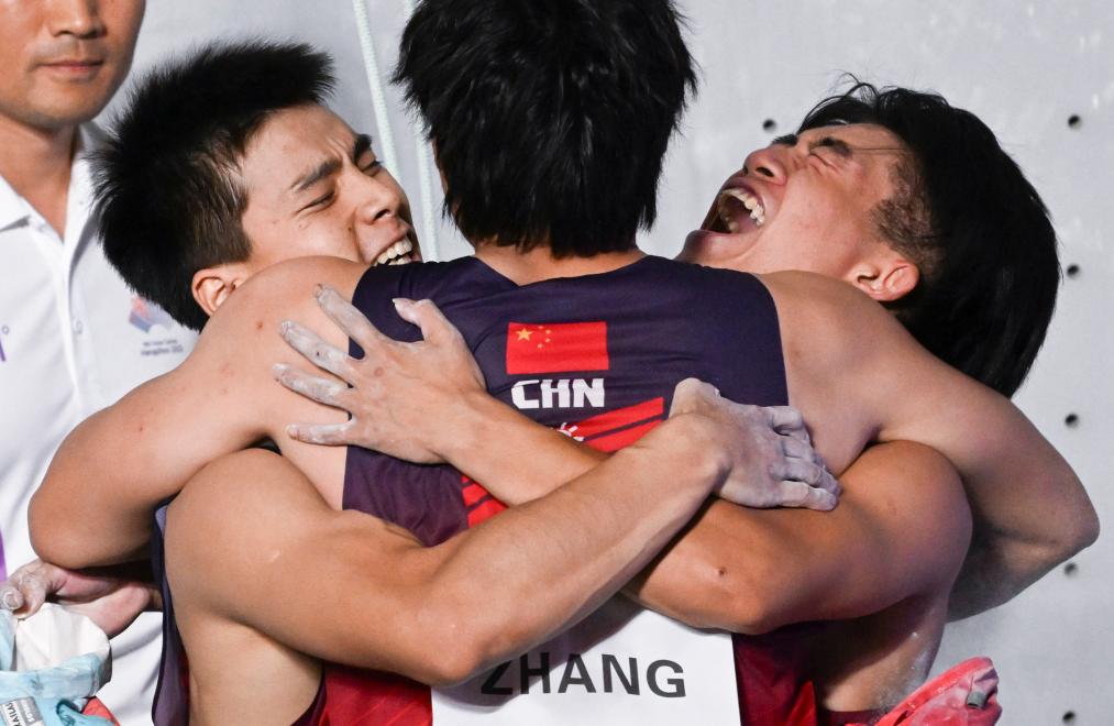 新華社浙江紹興10月4日電(記者王沁鷗、劉博、林光耀)在4日的杭州亞運(yùn)會(huì)攀巖比賽中,中國隊(duì)繼前一天遺憾錯(cuò)失個(gè)人項(xiàng)目金牌后,于接力項(xiàng)目創(chuàng)造歷史,在男、女團(tuán)體速度接力決賽中均力克衛(wèi)冕冠軍印度尼西亞隊(duì),包攬雙金。這也是中國隊(duì)首次在亞運(yùn)會(huì)賽場上獲得攀巖項(xiàng)目金牌。
