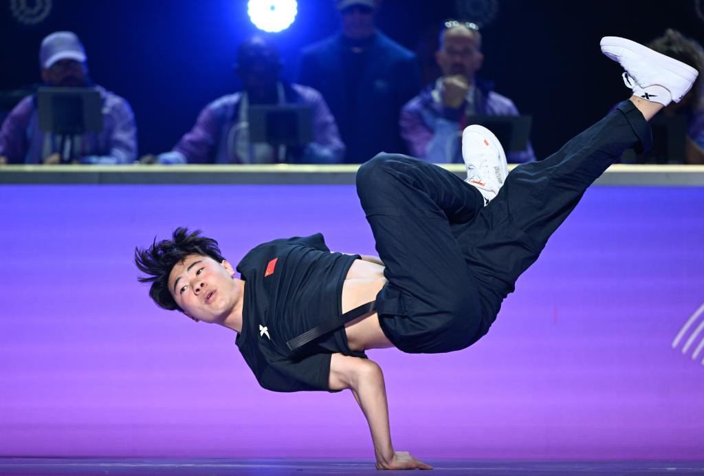 10月6日,杭州亞運會霹靂舞項目開賽。圖為亓祥宇在男子個人資格賽中。新華社記者 顏麟蘊 攝