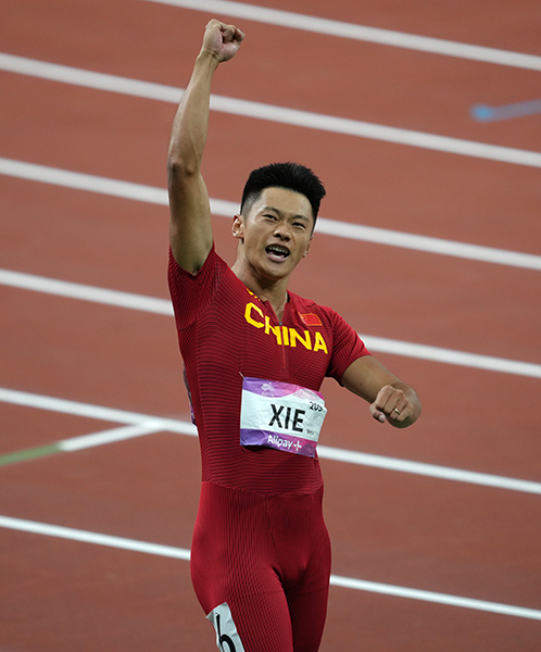 中國(guó)選手謝震業(yè)以9秒97的成績(jī)撞線奪冠