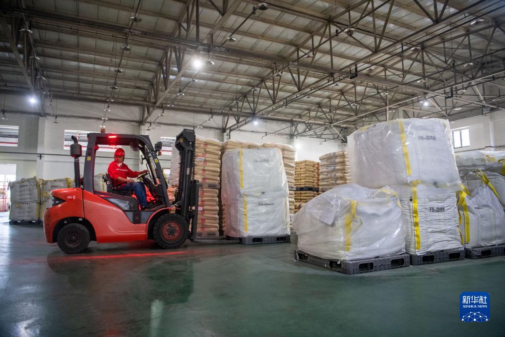 10月17日,在中國(guó)石化集團(tuán)重慶川維化工有限公司,工作人員在將以乙炔為原料生產(chǎn)的化工產(chǎn)品進(jìn)行打包裝車。
