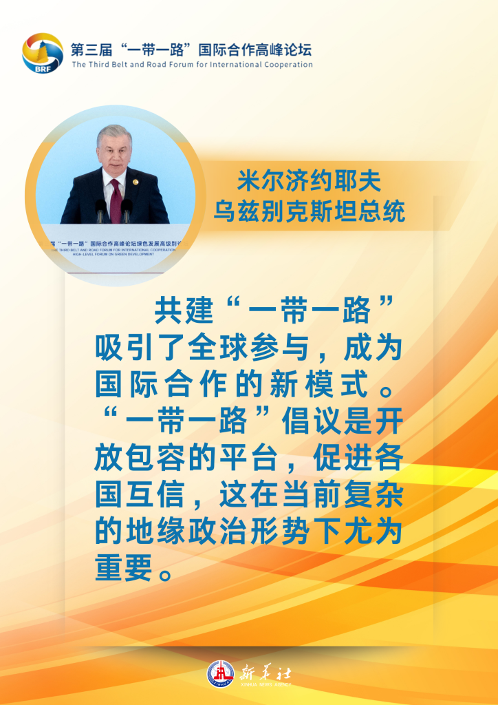 多位外國(guó)領(lǐng)導(dǎo)人和國(guó)際組織負(fù)責(zé)人18日在北京出席第三屆“一帶一路”國(guó)際合作高峰論壇時(shí)表示,高度認(rèn)同習(xí)近平主席發(fā)表的主旨演講,對(duì)習(xí)近平主席宣布的支持高質(zhì)量共建“一帶一路”八項(xiàng)行動(dòng)感到非常鼓舞。他們認(rèn)為,“一帶一路”倡議有力促進(jìn)各國(guó)共同發(fā)展,愿繼續(xù)深化合作,推動(dòng)共建“一帶一路”取得更高質(zhì)量、更高水平的新發(fā)展,攜手打造下一個(gè)“金色十年”。