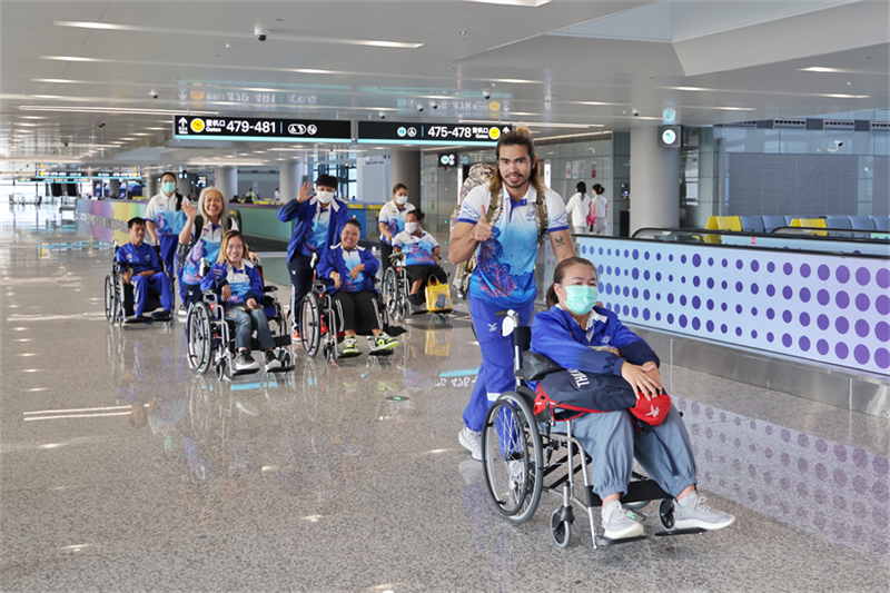 一路上,殘疾運動員沒有遇到一個臺階。廊橋口的無障礙電梯、流線上的無障礙坡道、清晰的標識標牌、隨處可見的低位飲水機及服務柜臺,完善的無障礙設施,都為殘疾運動員創(chuàng)造了便利的出行環(huán)境。抵離工作人員和志愿者全程的暖心陪伴,更是讓抵達流程“加速”與“升溫”。