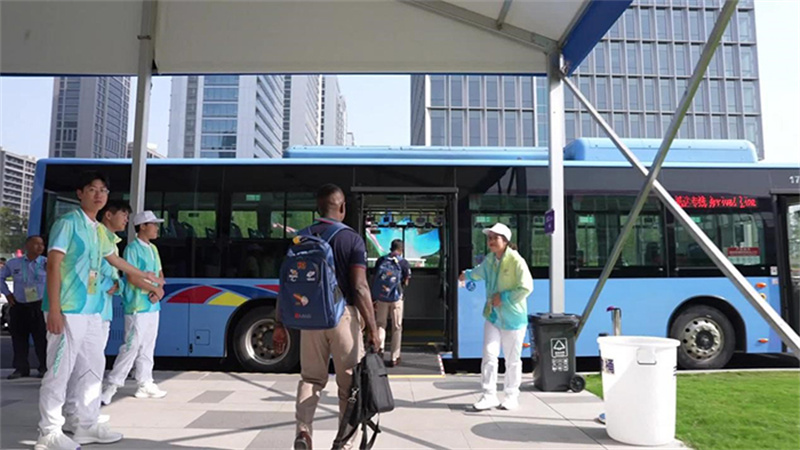 在亞殘運村,運動員們交通出行相當便利,無論是小型接駁車還是接駁巴士,每一輛車都配備了齊全的助殘設備,輪椅可以輕松上下?!按濉眱?nèi)站點安排合理,從居住區(qū)到運動員餐廳,從歡迎中心到綜合門診部,“村”內(nèi)交通路線四通八達,班次密集,乘坐方便,駕駛員們的服務更是讓人豎起大拇指。