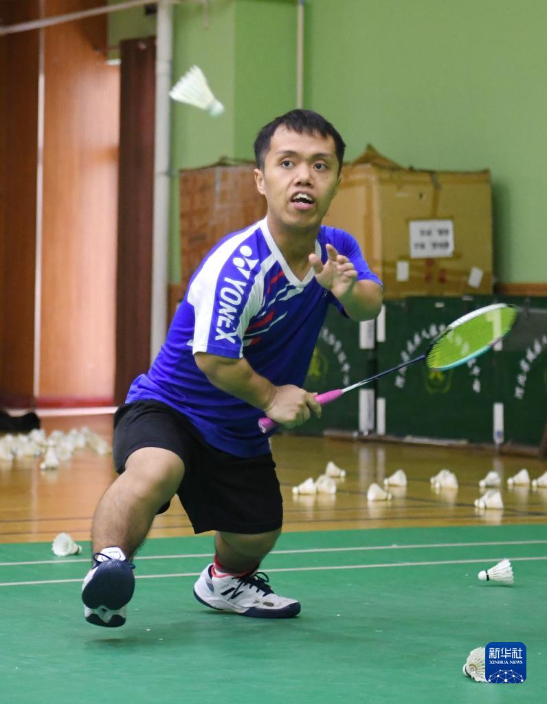 9月12日,中國(guó)殘疾人羽毛球隊(duì)運(yùn)動(dòng)員曾慶濤在訓(xùn)練中。新華社記者 朱旭東 攝