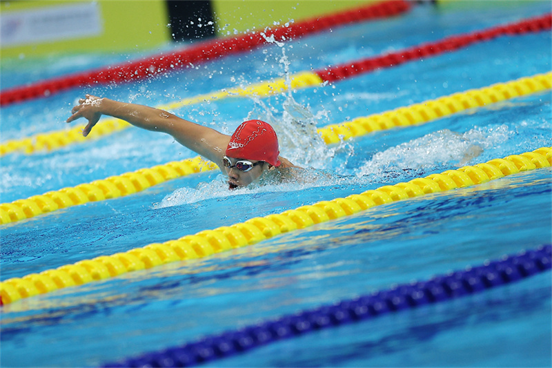 10月25日,在杭州奧體中心游泳館舉行的男子100米蝶泳S8決賽中,中國(guó)選手伍洪良奪冠,另一名中國(guó)選手周志華為亞軍,烏茲別克斯坦選手阿齊茲別克·博伊納扎羅夫?yàn)榧拒姟?/p>
