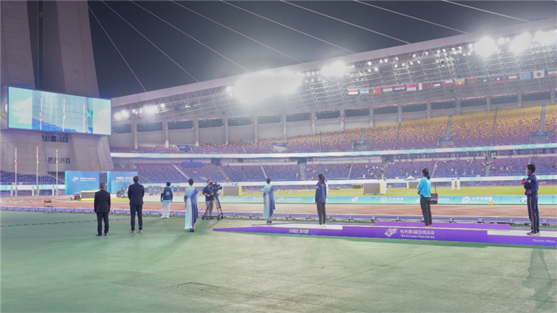 本次杭州亞殘運(yùn)會的田徑賽場,6天時間里一共將產(chǎn)生153枚金牌(不包括并列情況),平均每天要頒獎20余次。以10月25日為例,當(dāng)天要舉行30次頒獎儀式,在如此頻繁的情況下,黃龍體育中心如何確保儀式過程萬無一失呢?