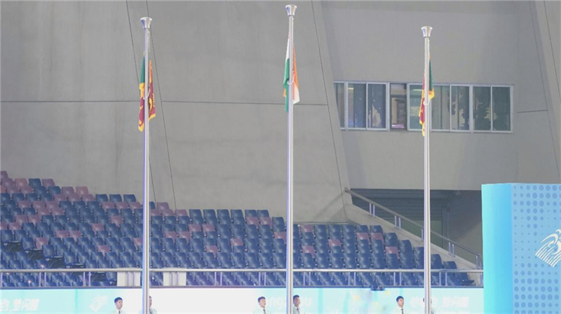 在黃龍體育中心,有一塊專門的旗幟準(zhǔn)備區(qū)域,不到20平方米的房間里掛著數(shù)百面旗幟,賽事期間會有多名志愿者對旗幟進(jìn)行熨燙,以保證這些旗幟在升起時挺拔有型。儀式結(jié)束后,旗幟將返回這個房間,井然有序。