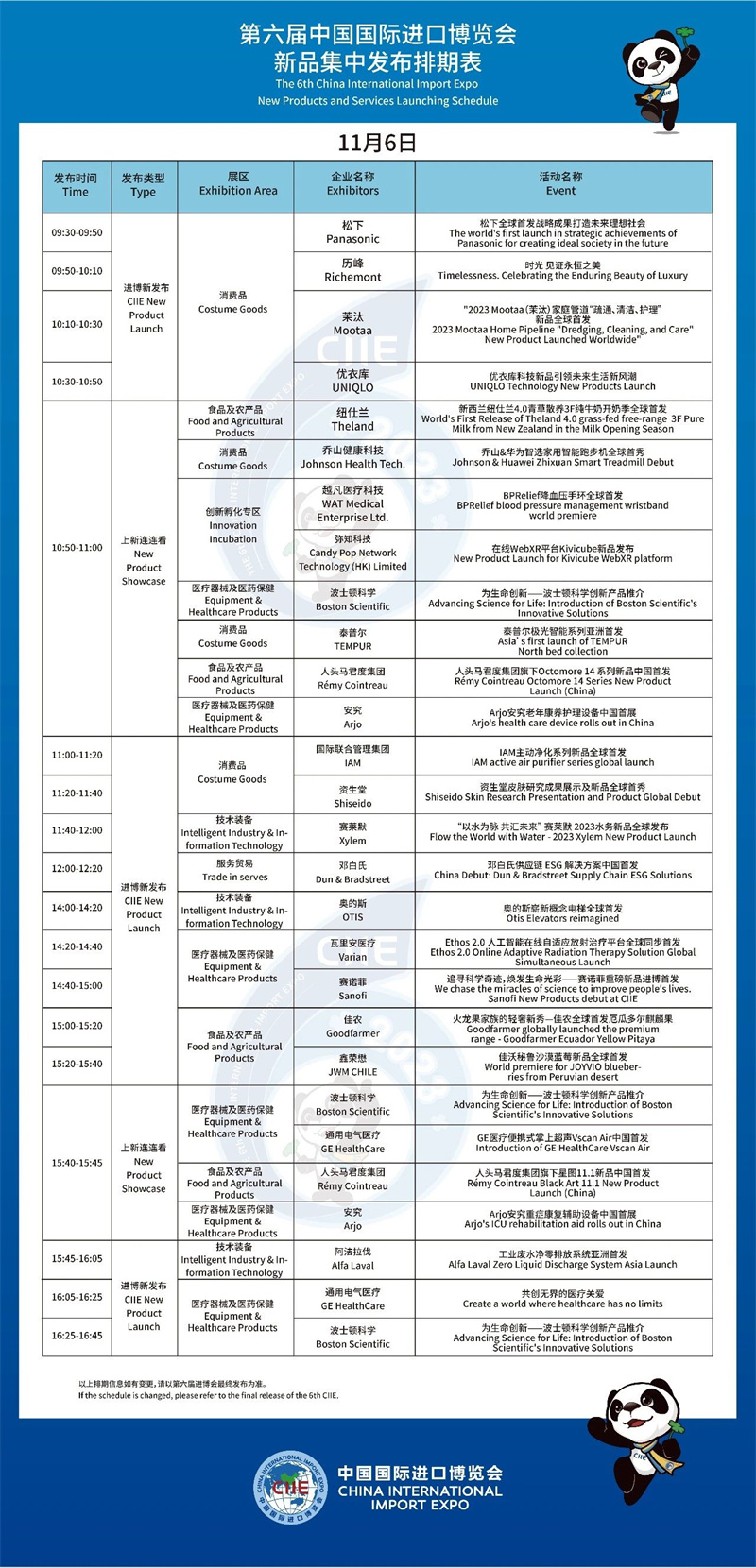 第六屆中國(guó)國(guó)際進(jìn)口博覽會(huì)新品集中發(fā)布排期表