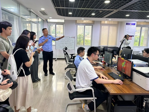 涪陵區(qū)公安局圖偵支隊支隊長徐浩向采訪團介紹數(shù)字化警務改革工作。人民政協(xié)網(wǎng)記者王慧文 攝