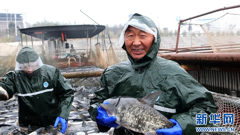 圖為湖北省老河口市排子河水庫淡水魚基地捕撈現(xiàn)場。 新華網(wǎng)發(fā)