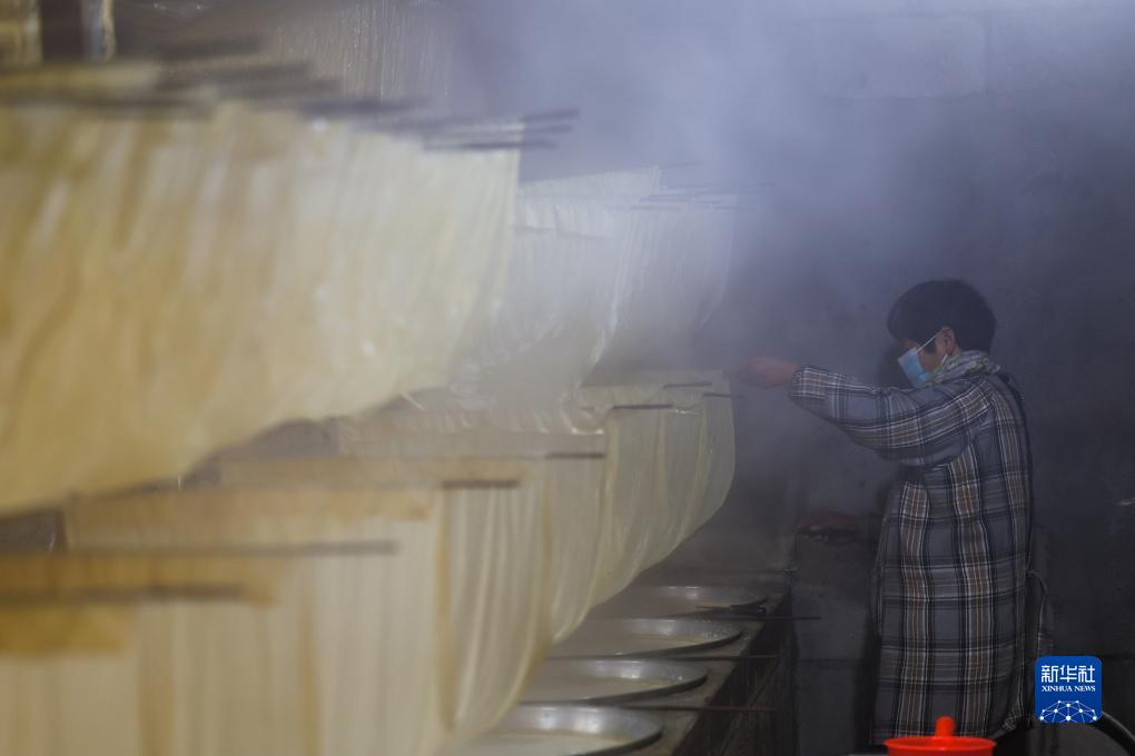 春節(jié)臨近,浙江省諸暨市安華鎮(zhèn)的傳統(tǒng)年貨——豆腐皮迎來銷售旺季。村民加緊制作豆腐皮,供應(yīng)節(jié)日市場(chǎng)。