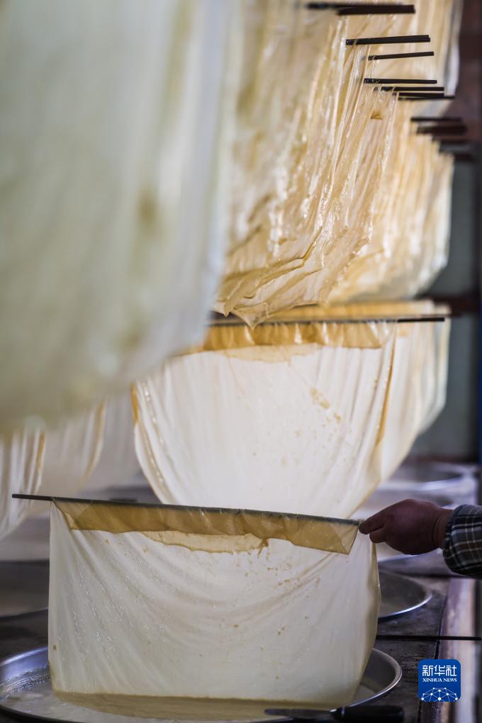 這是在諸暨市安華鎮(zhèn)勾乘山村拍攝的新鮮豆腐皮(1月16日攝)。
