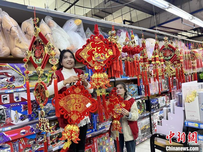 春節(jié)臨近,新疆阿圖什市的大街小巷年味濃。采購年貨正當時,瓜果蔬果、新春掛件等年貨紛紛被各大商超上架,供市民采購。